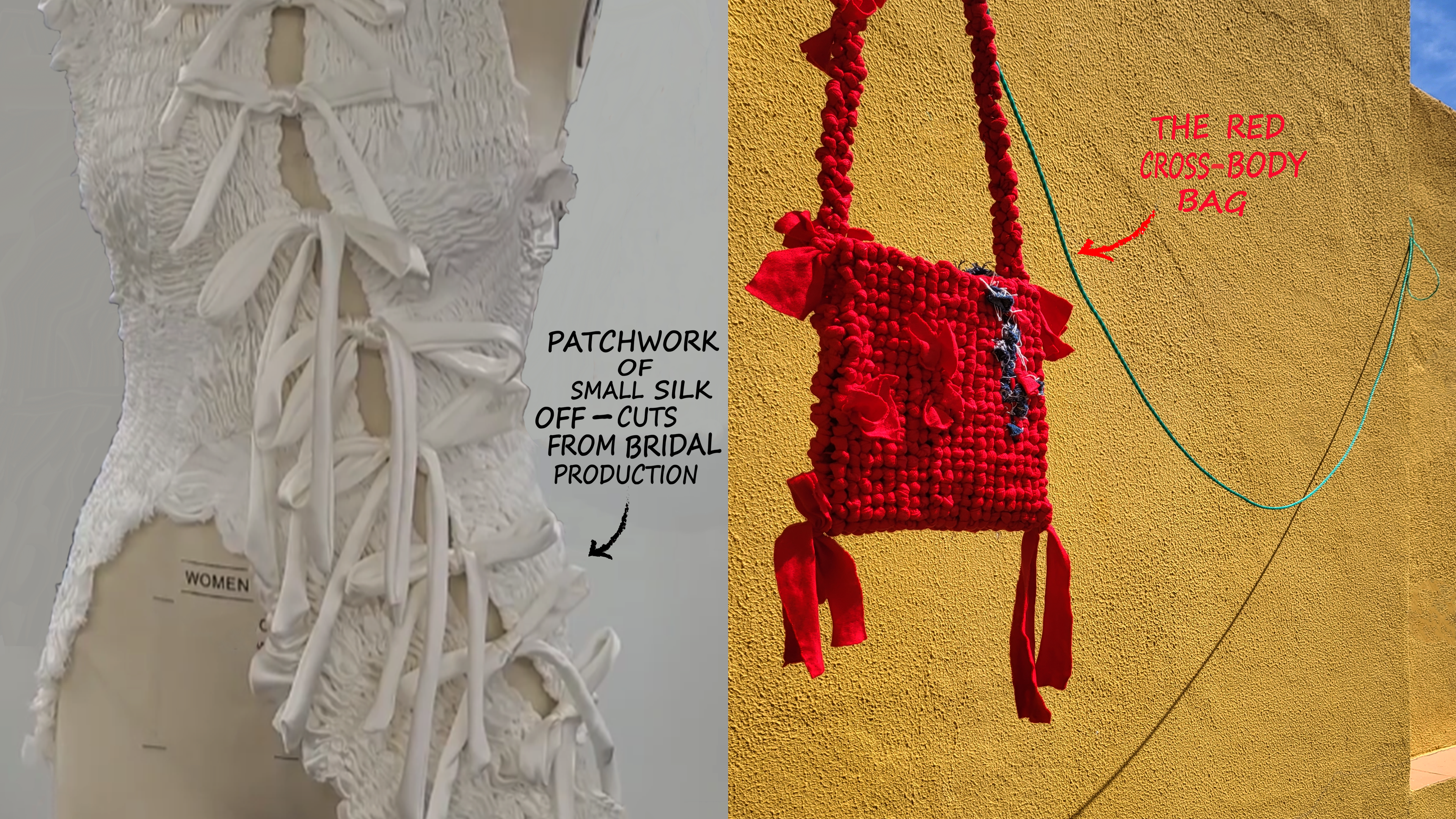 Amy is a slow fashion designer and sustainable creative, who's graduate collection was a recipient of the 'Vivienne Westwood Ethical Fashion Award'. Breathing new life into unwanted textiles and discarded clothing, she works meticulously with waste to create one-of-a-kind garments and accessories. Whether unpicking second-hand garments, sourcing production off-cuts from bridal companies, or upcycling damgaged pieces, she strives to tackle the Garment Landfill Crisis through all of her methods and materials.