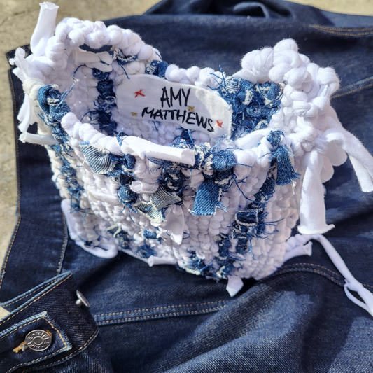 WHITE CROSS BODY BAG WITH DENIM THROUGHOUT